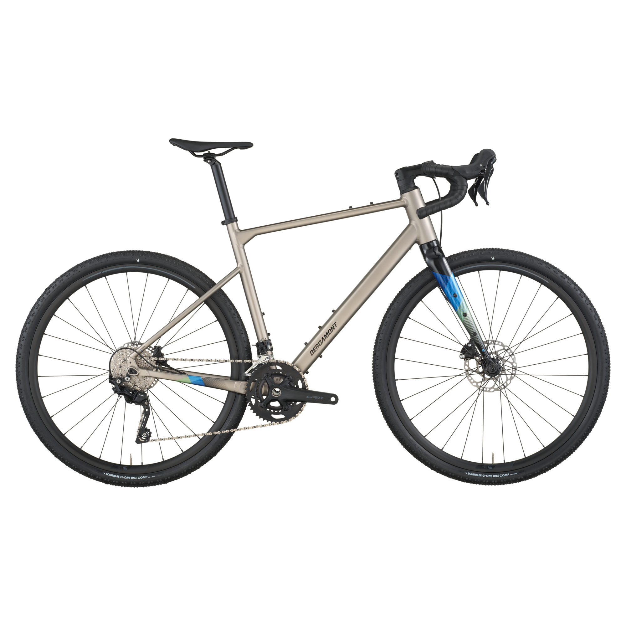 Gravel at its finest: A fully thought-out, multi-functional aluminum frame platform with balanced all-road geometry, maximum tire clearance, countless mounting points for accessories and a seminal design. An attractive allrounder with sophisticated Shimano GRX 2x10 speed gravel components.